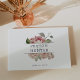 Invitation vos invités mariages à partager leurs souhaits et leur sagesse avec ce livre d'hôtes fleuri. Le design élégant comprend un élément central portant vos noms niché dans un bouquet de rose pastel aquarelle et de fleurs de pivoines dans des tons chic de rose rousse et vert sauge. Ajoutez du texte personnalisé supplémentaire sur la colonne vertébrale. Conçu pour être coordonné avec notre collection de mariages Blush Rose.