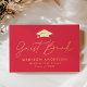 Prenez le souvenir du grand jour de votre diplômé avec ce livre d'or rouge étonnant, avec une casquette de fin d'études en feuille d'or en haut et "Livre d'or" en écriture de feuille d'or moderne. Personnalisez le livre avec le nom du diplômé, le nom de l'école et l'année de fin d'études ci-dessous pour une touche unique et significative. La colonne vertébrale affiche également le nom du diplômé et l'année de classe pour un maintien durable. Sur le dos, une photo horizontale à fond de sang du diplômé ajoute une touche personnelle au design. Ce livre d'or est parfait pour les diplômés du secondaire et du collégial, offrant une façon élégante et mémorable de recueillir les voeux et les réflexions de vos amis et de votre famille.