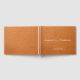 Un simple élégant monogramme du nom des mariés avec date et lieu, sur un fond effet cuir faux coloré. Élégance classique simple. Livre de souvenir de signature des invités de mariage. Élégant caractère serif ancien modelé sur le style de gravure romain, avec esperluette de script.