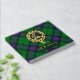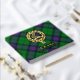 Clan Armstrong badge crête entouré d'une sangle et boucle sur l'arrière - plan tartan. Texte avant, arrière et colonne vertébrale personnalisé.