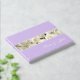 Ce livre d'or est présenté en lavande avec un panneau d'accent de roses blanches florales joli.