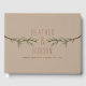 Un livre d'or mariage avec une illustration de branches à feuillage persistant à l'avant. Personnalisez le texte à l'avant pour y inclure les noms et la date du mariage. Des invitations de mariage et d'autres produits de coordination sont disponibles chez Jill's Paperie.