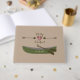 Un livre d'or mariage avec une illustration d'un canot vert et des flèches à l'avant. Personnalisez le texte à l'avant pour y inclure les noms et la date du mariage. Des invitations de mariage et d'autres produits de coordination sont disponibles chez Jill's Paperie.