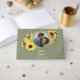 Doté d'un thème tournesol avec de délicats accents de feuille d'or et des polices de caractères contre un arrière - plan Sage Green. Personnalisez avec votre photo préférée pour un souvenir spécial unique pour votre mariage.