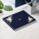 Vraiment Foil ! Toucher avec éclat et classe ! Design unique avec aquarelle délicate blanc, bouquets de fleurs crème, cloison fleurie, sur un arrière - plan bleu marine. Sur le dos blanc fleurs cadre coeur sur arrière - plan bleu marine. Utilisez l'outil Personnaliser pour ajouter vos informations. Pour les articles correspondants, veuillez visiter ma collection de fleurs blanches .