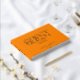 Real Foil Elegant Orange Calligraphy Script Mariage Guest Books dispose d'élégante typographie de script de calligraphie argentée moderne avec vos noms et date de mariage ci-dessous. Ajoutez votre texte personnalisé sur la colonne vertébrale du livre d'or. Créé par Evco Studio. www.zazzle.com/store/evcostudio