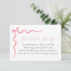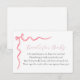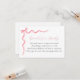 Une carte d'insertion de demande de livre pour une baby shower. Avec un nœud rose aquarelle et un poème : "UNE PETITE DEMANDE, ON ESPÈRE QUE CE N'EST PAS TROP DUR VEUILLEZ APPORTER UN LIVRE AU LIEU D'UNE CARTE ILS CHÉRIRENT LE LIVRE, BIEN AIMÉ OU TOUT NEUF VEUILLEZ SIGNER L'INTÉRIEUR AVEC UN MESSAGE DE VOTRE PART !"