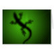 Eine kleine Eidechse ist gegen ein grünes Blatt silhoutiert. Ein helles Licht scheint von hinten. Computerkunst von Kathie Miller.