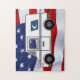 Dieses Rätsel ist mit einem auf der US-Flagge überlagerten Post-Office-Lkw dekoriert.