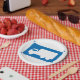 Ein LKW-Straßenschild mit einem großen weißen LKW darauf. Dieses Design wirkt auf diese Paper-Teller sehr effektiv