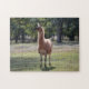 Mon œuvre d'art originale est présentée sur ce puzzle d'animaux amusant, composé de ma photo originale d'un grand lama dans un pâturage de ferme, stylisée avec une technique de peinture illustrée douce pour une apparence artistique.