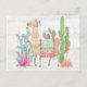 Eine weiche Aquarellfarbe mit einem unter Kakteen stehenden Lama. Künstlerin: Mary Urban