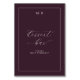 This elegant tabletop sign features a sophisticated maroon background with an inviting script typography that reads "dessert bar" and "please help yourself." The design exudes a refined and timeless charm, perfect for adding a touch of class to your wedding reception. With its simple yet stylish layout, it creates a warm and welcoming atmosphere, encouraging guests to indulge in the sweet treats. Ideal for any formal or semi-formal event, this sign can be easily customized to fit your special day's theme.
