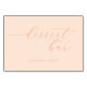 This elegant tabletop sign features a soft, blush pink background with the words "dessert bar" written in an elegant cursive script. The phrase "please take a treat!" is added below in a smaller, simple font, inviting guests to indulge. Perfect for adding a touch of sophistication and charm to your wedding reception, this design exudes warmth and romance, creating a delightful atmosphere at your dessert station. Its minimalist yet stylish aesthetic ensures it complements any wedding theme seamlessly.