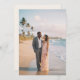 This wedding invitation features a romantic beach scene, capturing the essence of a serene and intimate celebration. The soft pastel color palette, combined with the gentle ocean waves and palm trees in the background, evokes a sense of tranquility and warmth. Perfect for couples envisioning an elegant seaside ceremony, this design exudes a dreamy and timeless mood, inviting guests to share in your special moment. With customizable text areas, it allows you to personalize every detail while maintaining its sophisticated charm.