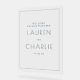 This elegant wedding sign features a minimalist and modern design, perfect for creating an understated yet sophisticated ambiance at your special event. The clean typography is simple and refined, ensuring that the focus remains on the heartfelt message it conveys. Set against a soft, blurred background with natural hues, this sign exudes a serene and romantic mood, ideal for marking significant moments during your ceremony or reception. Its versatile style makes it suitable for both indoor and outdoor settings, adding a touch of class to any decor while allowing you to personalize it further as needed.