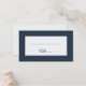 This elegant wedding place card features a minimalist design with a clean, modern aesthetic. The simple yet sophisticated layout includes a white background framed by a navy border, creating a timeless and classic look perfect for any wedding setting. The cursive typography adds a touch of romance and personal charm, while the blank lines allow for easy customization to assign guests to their tables. Ideal for couples seeking an understated elegance, these cards will complement your special day with grace and refinement.
