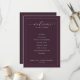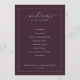 This elegant wedding program features a sophisticated maroon background with an understated yet refined script typography that adds a touch of timeless charm. The layout is clean and structured, guiding guests through the ceremony's key moments in a graceful manner. Perfect for couples seeking a classic and polished aesthetic, this design exudes warmth and formality, making it ideal for a memorable celebration. Its customizable text areas allow personalization to fit your special day seamlessly.