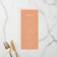 This elegant wedding menu design features a warm, peach-toned background that exudes sophistication and charm. The clean, modern typography complements the minimalist layout, highlighting each course with simplicity and grace. Perfect for a romantic celebration, this design captures an inviting and intimate mood, ideal for showcasing your special day's culinary delights. With its customizable text areas, it allows you to personalize every detail while maintaining a cohesive and stylish look throughout your event.