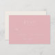 Diese elegante Hochzeits-RSVP-Karte zeichnet sich durch einen sanften rosa Hintergrund mit minimalistischer Typografie aus, wodurch sie ein zurückhaltendes, aber dennoch anspruchsvolles Aussehen erhält. Die sauberen Linien und das einfache Design ermöglichen eine einfache Anpassung persönlicher Details, während sie einen zeitlosen Charme bewahrt. Perfekt für Paare, die ihre Liebesgeschichte auf eine verfeinerte Weise vermitteln möchten, strahlt diese Karte Wärme und Anmut aus und ist somit ideal für eine romantische Feier. Ihre subtile Farbpalette sorgt dafür, dass sie zu verschiedenen Hochzeitsthemen passt und vielseitige Möglichkeiten für jeden besonderen Anlass bietet.