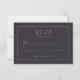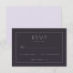 Diese elegante Hochzeits-RSVP-Karte zeichnet sich durch ein minimalistisches und anspruchsvolles Design mit sauberen Linien und einer monochromen Farbpalette, hauptsächlich in dunklen Tönen, aus. Die Typografie ist modern und dezent und ergänzt die allgemeine verfeinerte Ästhetik. Sie ist perfekt für Paare, die für ihren besonderen Tag ein schickes und zeitloses Aussehen bevorzugen. Mit anpassbaren Textbereichen können Sie Ihre Nachricht personalisieren und gleichzeitig eine Atmosphäre der Eleganz und Schlichtheit bewahren. Ideal für die Erstellung eines kohärenten und stilvollen Einladungssets, das zeitgenössischen Geschmack widerspiegelt.