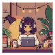 In dieser gemütlichen 8-Bit-Szene sitzt eine Figur an einem Schreibtisch mit Kopfhörern und taucht in ihr Studium ein. Inmitten von Pflanze, Büchern und gedämpfter Beleuchtung ist das Ambiente perfekt für konzentrierte Einsamkeit. Die lo-fi-Ästhetik fügt sich in eine nostalgische und beruhigende Touch ein und ist somit ein idealer Ort für Konzentration und Entspannung.