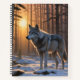 Un lobo solitario en un bosque nevado, bañado por la luz dorada del atardecer. Una escena mágica y misteriosa que evoca la belleza salvaje de la naturaleza.