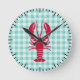 Lobster auf Blue Gingham Runde Wanduhr