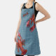 Lange Schürze mit Hummer-Design für Papa oder jeden Mann. Kolonialblau, mit Krebsen und Hummermuster. Zwei große rote Hummer krabbeln von unten und von oben nach oben. Eine perfekte Ergänzung zur Küche eines Meeresfrüchte Liebhabers. Ein gelinkter Text über einem blauen Pinselstrich ist "Vater", kann aber in "Mama" oder einen persönlichen Namen geändert werden. Auf der längsten Schürze gezeigt, mit einer kürzeren Version verfügbar.