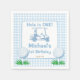 Loch in einem Golf-Thema 1. Geburtstag Party mit Monogramm bedruckte Servietten, pastellblaue Gingham handrawn Sketch Golf Golfbälle Geburtstagsparty personalisierte Servietten, Golf Geburtstag personalisierte Tischdekoration, Jungen 1. Geburtstag Party Dekoration, erste Geburtstagsparty gedruckte Geschirr
