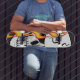 Schlechter Schädel mit Reißzähnen und Flammen macht Ihr Skateboard eine böse Fahrt!