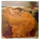 Eine Allegorie für das Flammen von Juni. Vintages Porträt eines schönen Redhead, der ein vibrierendes orange Kleid des lichtdurchlässigen Gewebes trägt. Sie Erholungen auf einer Marmorbank mit mehr Gewebe als Kissen. Im Hintergrund wird der Mondschein durch den Ozean reflektiert. Von einer ursprünglichen (1895) Malerei des 19. Jahrhunderts von Frederic Leighton. Alle Rechte vorbehalten © padre Kunst 2015