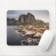 Landschaftliches Foto des traditionellen Fischerdorfes Hamnøya mit seinen Holzhäusern aus rotem Holz. Das Hotel liegt an der Küste der Lofoten-Inseln in Nordnorwegen, Skandinavien. Foto © Sebastian Worm