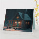 LOG CABIN SNOWY SCENE ART - GEBURTSTAGSKARTE. GEEIGNET FÜR FRAMING.