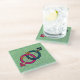 Glass Untersetzer mit dem "As An Arrow" Logo und grünem Raintrop-Hintergrund.