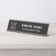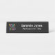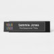 Einfache Personalisierung unserer austauschbaren Schreibtischnamensplatte mit Ihrem eigenen Firmenlogo, Namen, Jobtitel oder anderen benutzerdefinierten Text. Sie können die schwarze Hintergrundfarbe anpassen. Erhältlich in anderen Metallfarben in zwei Größen - Standard 2 Zoll x 8 Zoll oder lang 2 Zoll x 10 Zoll - und in zwei Formaten - als Schreibtischschild oder Türenschild. Keine Mindestbestellmenge und keine Einrichtungsgebühr.