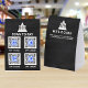 Create your own business logo personalized 4 x 6 paper table tents with up to 4 QR Code images for simple Scan To Pay for your customers. On the front, there are four image templates with titles for the names of the apps you accept, all on a faux black chalkboard background with white lettering. On the back is a virtual blank canvas where you can do a quick desserts list or tell the history of your company or perhaps awards your business has won in the community. If you only accept 3 apps, then upload a photo of your goods or services in one of the app slots to keep the balance of the design. Keep things organized and easy for your customers and yourself with these custom Scan To Pay QR Code paper table tents created just the way you want them and with the trendy look of black chalkboard.