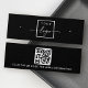 Carte d'affichage mini produit à oreille noire avec modèle de logo personnalisé centré et code QR sur le dos. Les repères d'oreille peuvent être ajustés en ajoutant et en enlevant des espaces dans le champ modèle, et en déplaçant l'élément entier dans l'outil de conception.