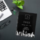 Un arrière - plan noir, avec une ligne d'horizon moderne et abstraite de la ville blanche. Personnalisez et ajoutez votre logo, votre nom et vos coordonnées. Parfait pour les agents immobiliers, les entreprises de nettoyage de maison, les concierges et les entreprises de construction!