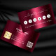 Un arrière - plan de dégradé bordeaux, texte blanc À l'avant : Ajoutez-vous une remise. Retour : Personnalisez et ajoutez votre nom, titre, numéro de téléphone, courrier, adresse de site, logo commercial, code qr à votre site Web ou compte de médias sociaux.