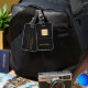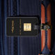 Schwarzes Imitat Leder als Hintergrund bedruckt. Personalisieren Sie Ihr Firmenlogo, Ihren Namen und Ihre Kontaktdaten und fügen Sie diese hinzu.