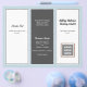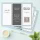 Dreifach gefaltete Broschüre in dunkelgrau, hellblau und weiß. Anpassen von sechs Bereichen, die ein Firmenlogo auf der Vorderseite, QR-Code und Fotovorlage enthalten. Das Center Panel hat einen Platz für ein persönliches Foto für die "about" Sektion. Fühlen Sie sich frei, den "bearbeiten" Bereich zu verwenden, um zu ändern und / oder bewegen Schriftart, oder kontaktieren Sie mich für Hilfe.
