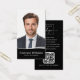 Modern, vertical, black and silver gray (printed color gradient, not real foil) curved border business cards with your name and title on the front and customizable template fields for your contact information, logo and QR code on the back. You can change background and font colors, move and resize elements with the design tool.