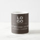 Diese individuelle Kaffeemaschine-Tasse verfügt über ein Muster-Logo oben, das Sie durch Ihr eigenes Firmenlogo ersetzen können. Unter dem Logo ist der Unternehmens- oder Firmenname, gefolgt von der Position. Der Hintergrund ist dunkelschokoladenbraun. Es ist ein großartiges Geschenk für Kunden und Mitarbeiter.