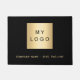 Schwarzer Hintergrund, goldener Text. Personalisieren und fügen Sie Ihr Firmenlogo, einen Text (oder löschen, wenn nicht gewollt) ein