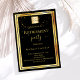 Feiern Sie den besonderen Meilenstein mit dieser eleganten Pensionierung Party Einladung. Dieses Design mit schwarzem Hintergrund wird durch einen goldenen Rahmen aus Imitaten und glitzernde goldene Konfetti-Sprinklen hervorgehoben. Die goldfarbene Schrift verleiht dem Ganzen eine Touch der Eleganz und ist somit perfekt für den Anlass. Personalisieren Sie es durch das Hinzufügen eines Firmenlogos, des Ruhestandsnamens und all Ihrer Party-Details, um eine wirklich einzigartige Einladung zu schaffen. Diese Einladung ist in verschiedenen Papiertypen und Formaten erhältlich und Set den Ton für eine unvergessliche Feier.