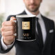 Ein klassischer schwarzer Hintergrund. Personalisieren und fügen Sie Ihr Firmenlogo (3), einen Namen und Monogramm Initialen (3). Der Name ist weiß mit modernen weißen und goldenen Blockbuchstaben geschrieben.