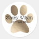 Élégant et moderne blanc et fausse feuille d'or empreinte de patte logo autocollants produit. Facile à customiser pour votre entreprise d'animaux de compagnie.