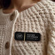 Schwarze Namensmarke mit Ihrem individuelle Name und Titel. Der Name und das Logo werden durch einen goldenen Farbverlauf getrennt. Eleganter und eleganter Stil. Laden Sie Ihr eigenes Logo hoch und erstellen Sie Namensmarken für Ihr Unternehmen oder Ihre Veranstaltung. Mit dem Designwerkzeug können Sie Schriftart- und Hintergrundfarben ändern.