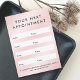 Cartes de rendez-vous avec champs modèle pour vos coordonnées et logo sur le dos. Arrière - plan de dégradé rose satiné doux. Les couleurs de police et de police peuvent être modifiées à l'aide de l'outil de conception.